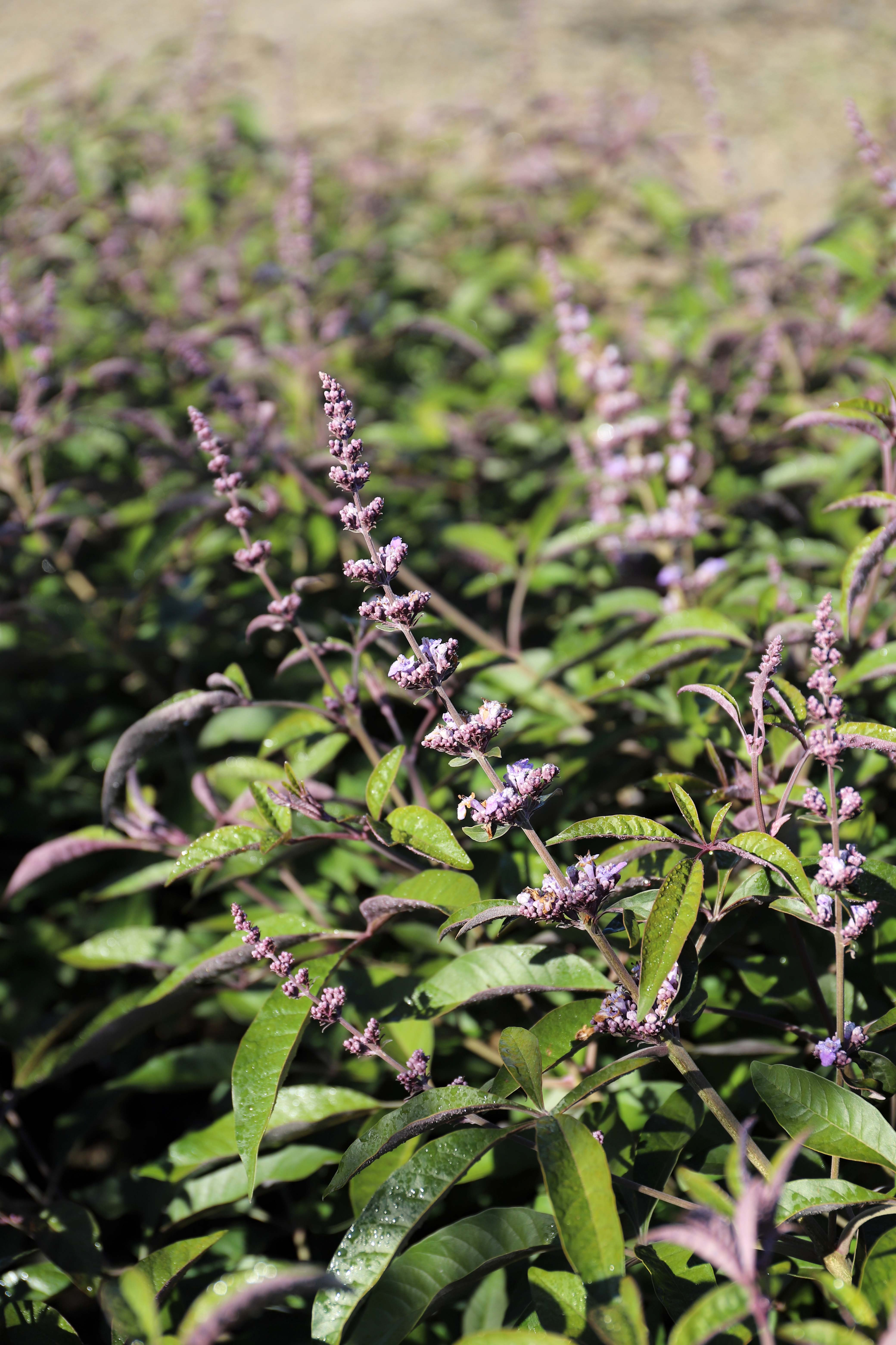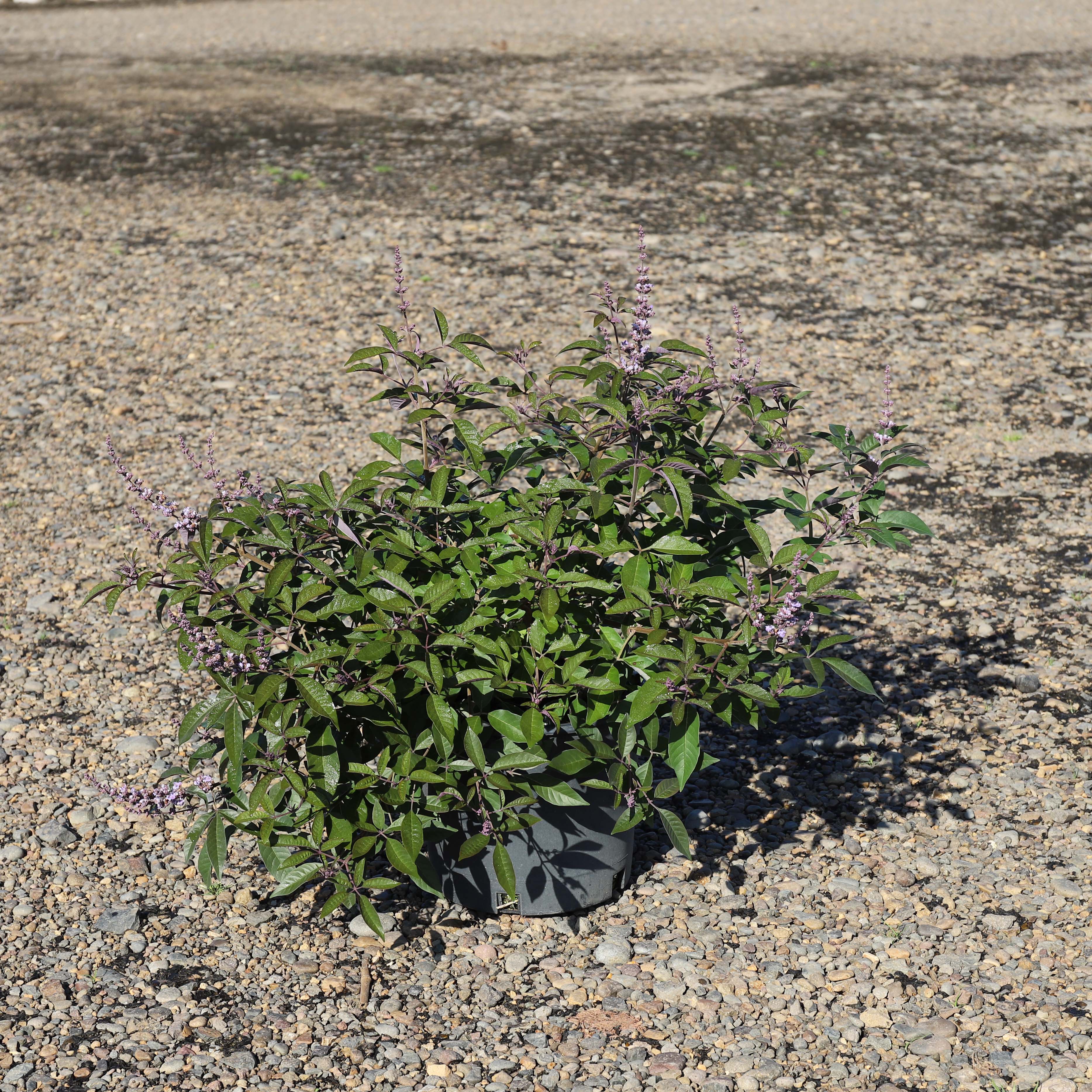 A large shrub with grayish olive green leaves that are dusky purple on the lower surface. It is cloaked in 8 inch panicles of fragrant, deep purple flowers in late summer. It is a strong re-bloomer. Attracts pollinators.