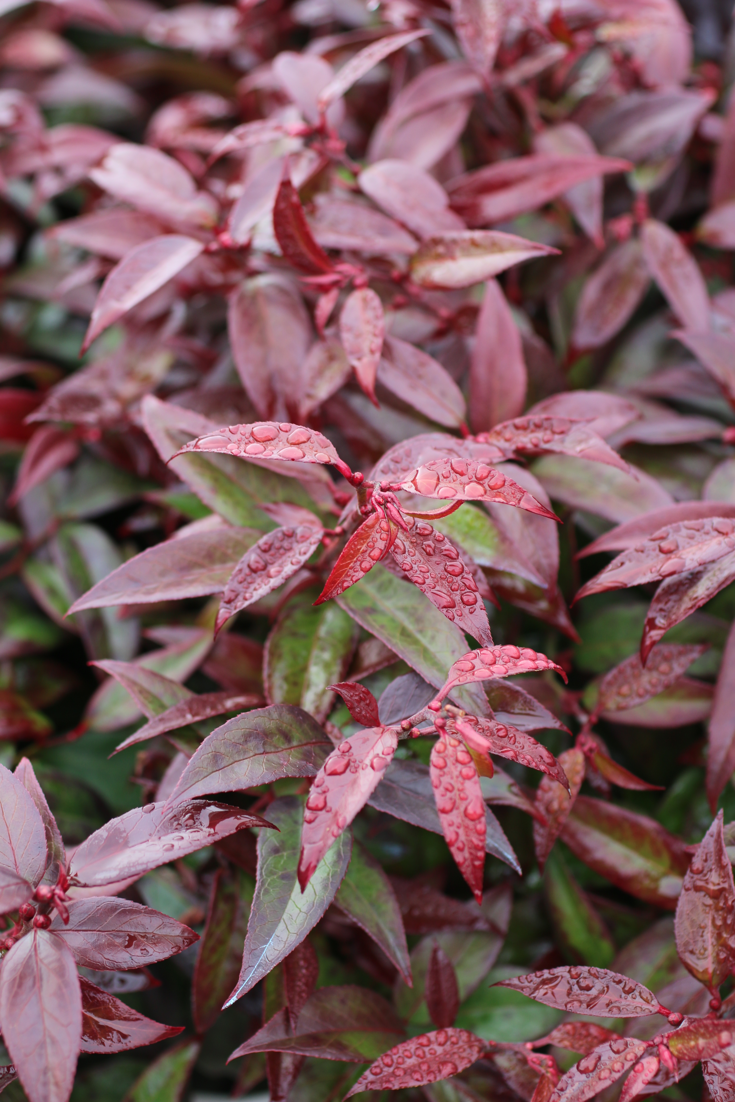 The second plant to catch my eye was the shiny purple-red foliage of Leucothoe axillaris. Known as Coastal Leucothoe, it also has the common names of Fetter bush, Swamp dog-laurel, and Doghobble. This is an evergreen shrub with arching branches, and leathery, shiny dark green leaves in the summer. In spring, clusters of white urn-shaped flowers appear, hanging beneath the branches. They remind me of Pieris or Lily-of-the-Valley flowers. It is a native to Virginia south in the Eastern U.S. It will grow in average, medium moisture, well-drained, preferably acid soil. It will grow in full sun with adequate moisture and protection from drying winds. Use in a rock garden, border, as a foundation plant, or under larger shrubs and trees.